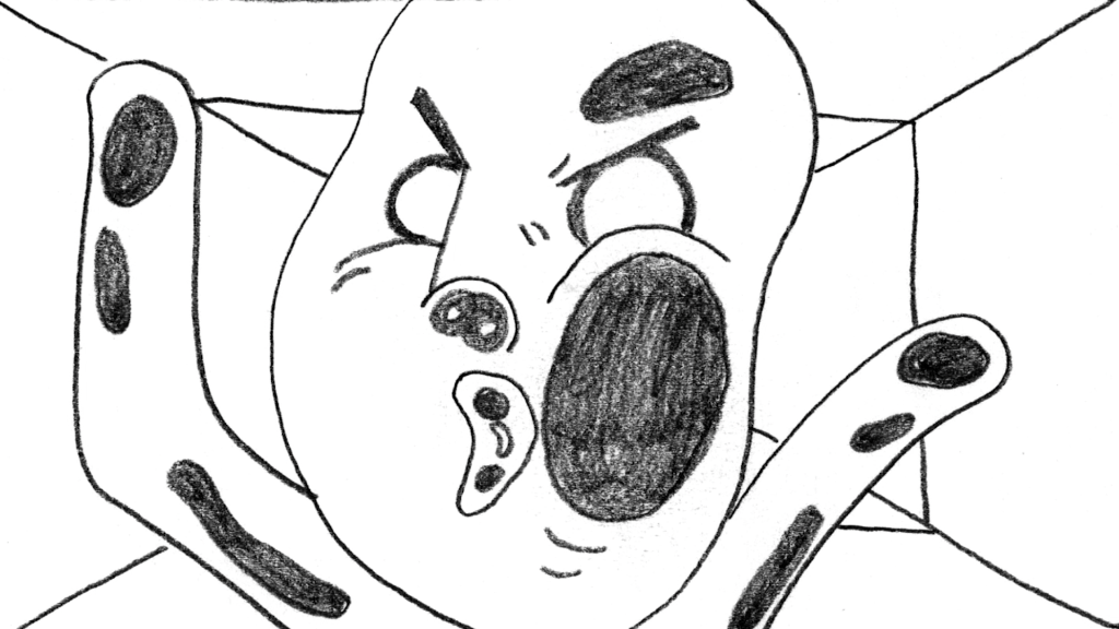 The obsession with depicting pain created new pain for me, and so on and so on. Eventually my pain was deconstructed into a series of meaningless, incomprehensible behaviors and actions. And all this effort became a complete waste of time. ” – Ape
